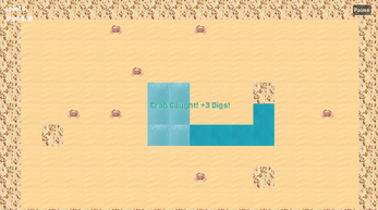Crabs scuttle after each move, so plan carefully to catch them all before your digs run out.