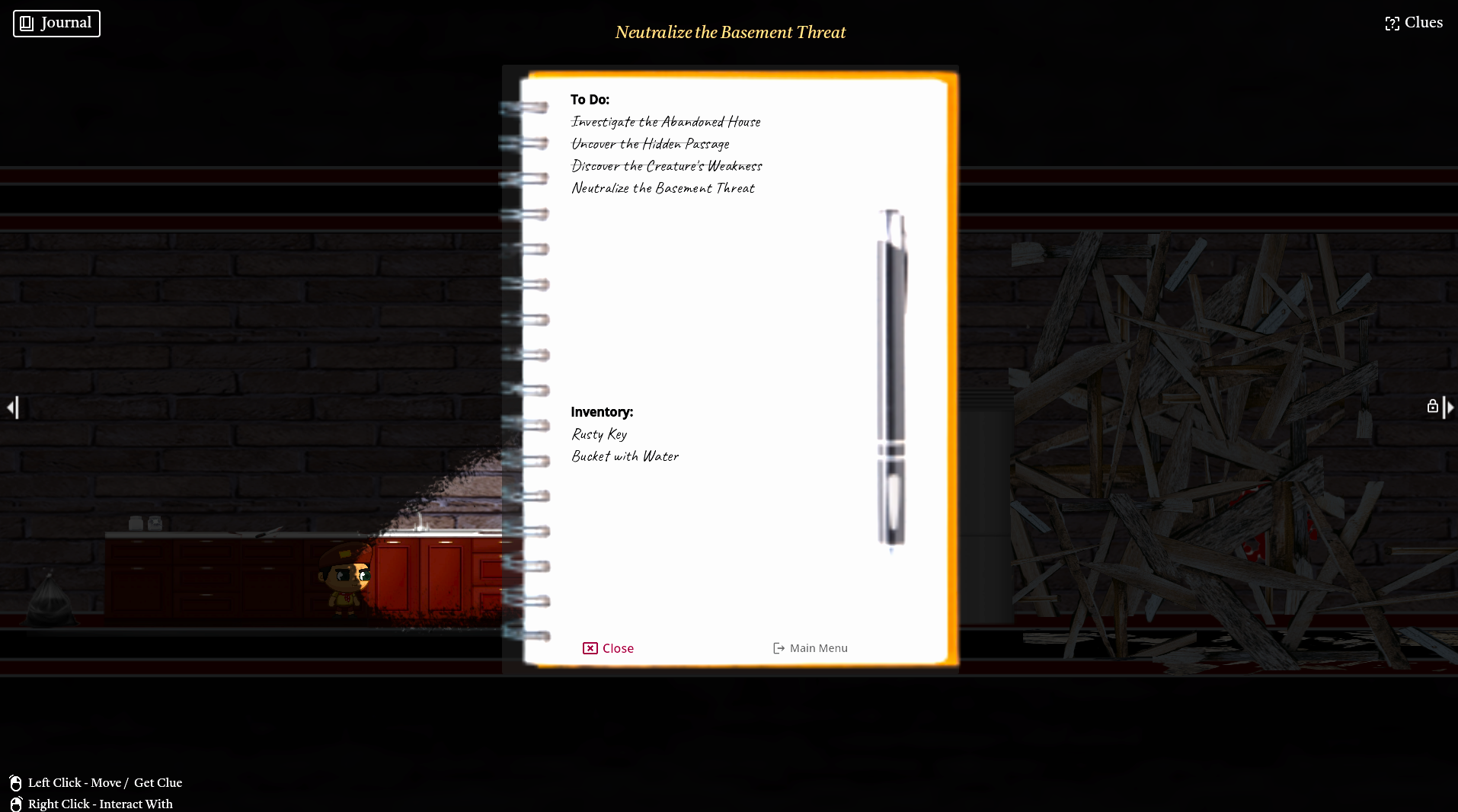 - Right-click: Interact with objects (Key, Book, Ladder, etc.)